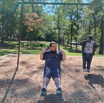As reported in the nomination of Jonathan for a Bell Personal Achievement award this past fall, he was encouraged toward his goal through a series of steps: one day, walk to the van; another day, go to the van and sit inside, and on another day, go to the van, sit inside and buckle his seatbelt, all leading to the day when he felt comfortable riding to the park, and eventually – in fact, right around the time he received his award – getting out of the van to ride the swings!