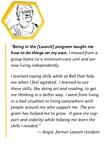 Bell’s Launch program (formerly known as CRAS – Community Residential Apartment Services) provides a structured environment for people living with mental illness who need to learn skills for self-empowered independent living. Group homes provide maximum supervision and apartments give moderate and/or minimum levels of care.